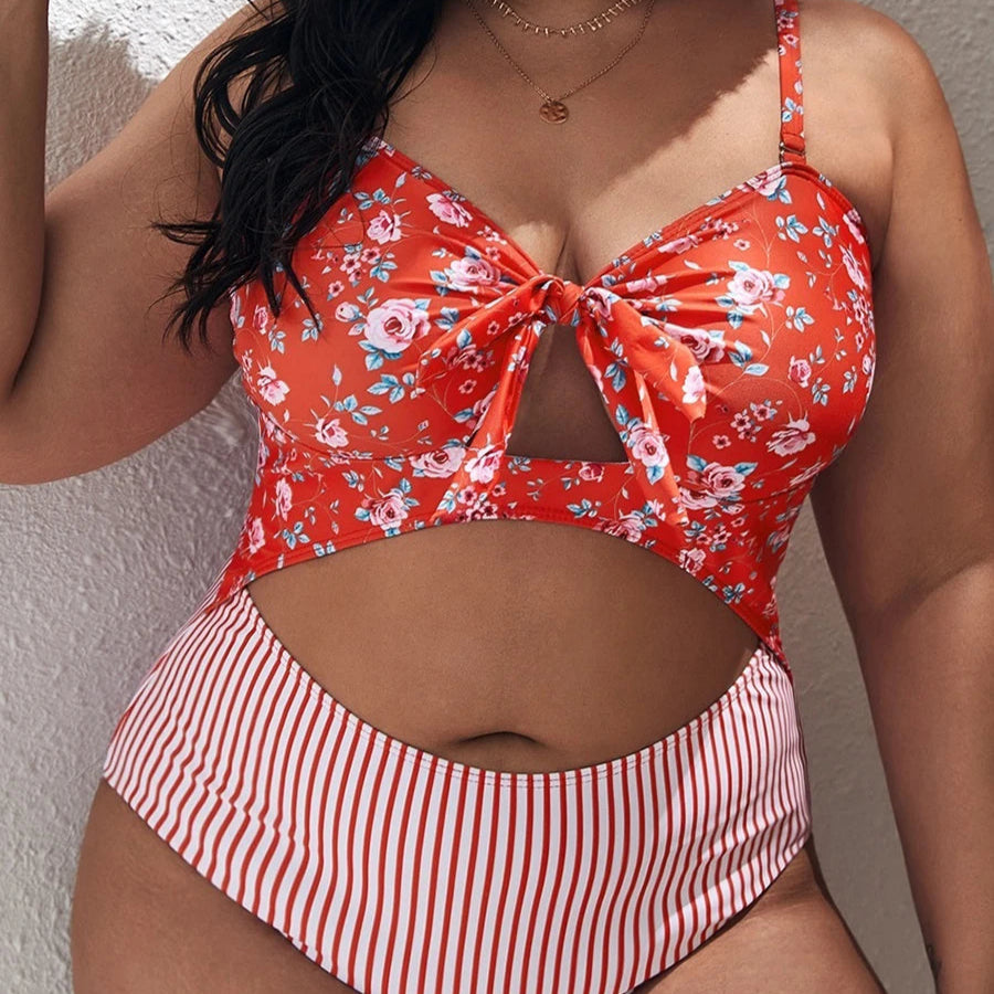 Tropical Bloom Cut-Out One-Piece — Plus Size