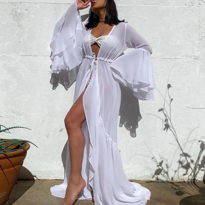 Whether you're lounging poolside or walking by the ocean, this cover-up brings the perfect balance of modesty, elegance, and style — all in one stunning piece.