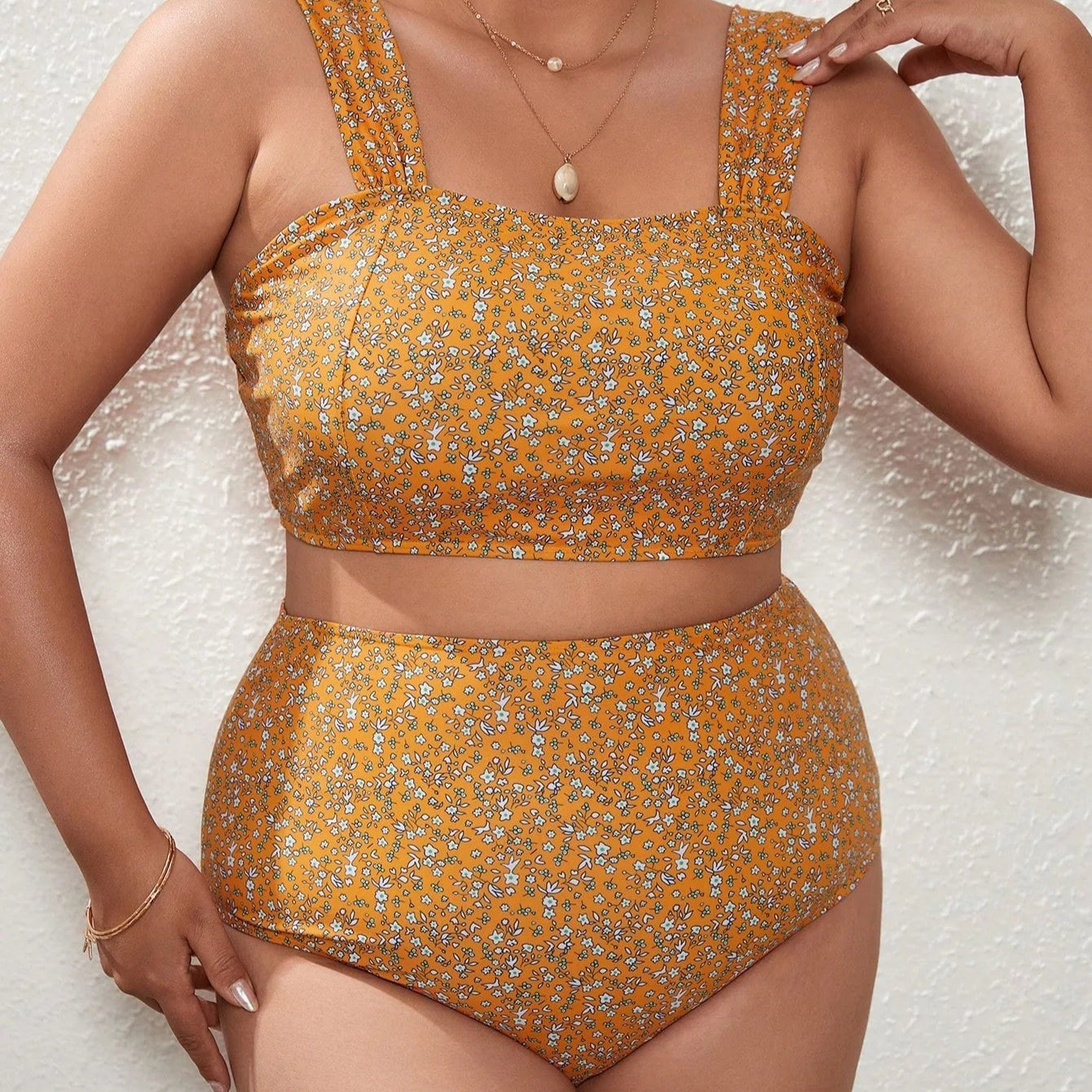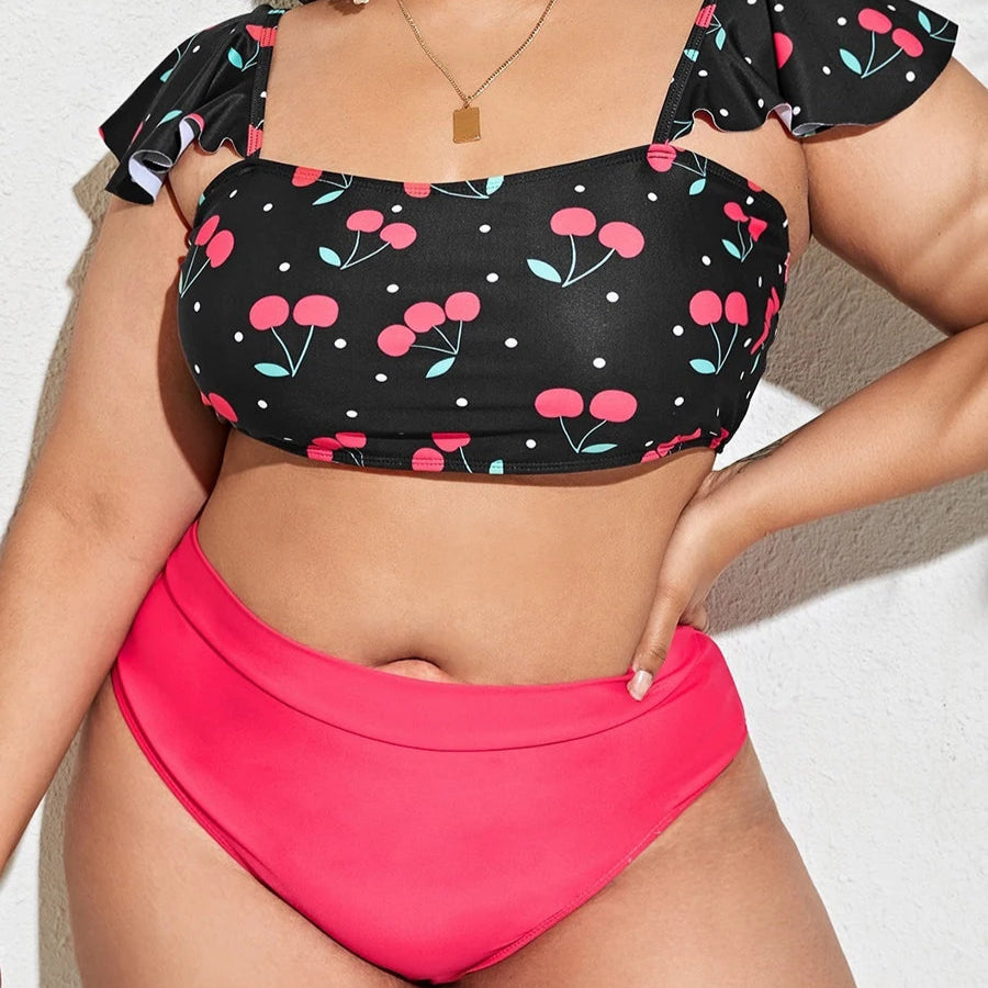 Princess Neckline Plus Size Bikini – High-Waist Bottom
