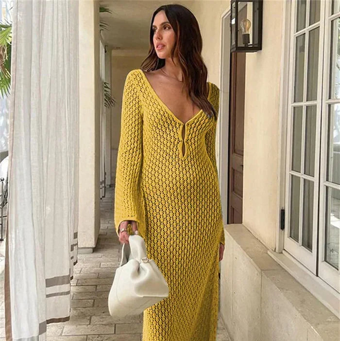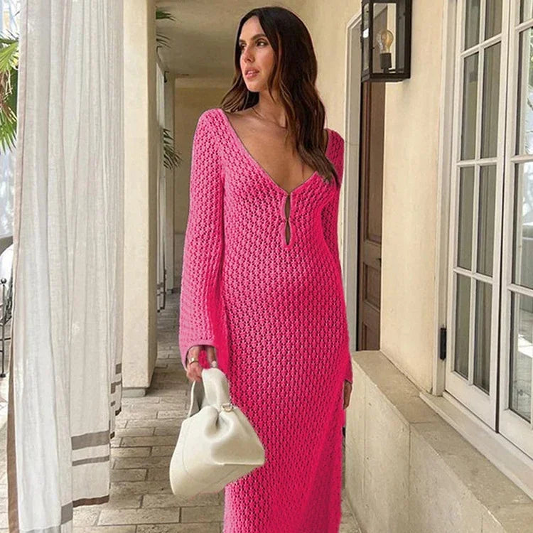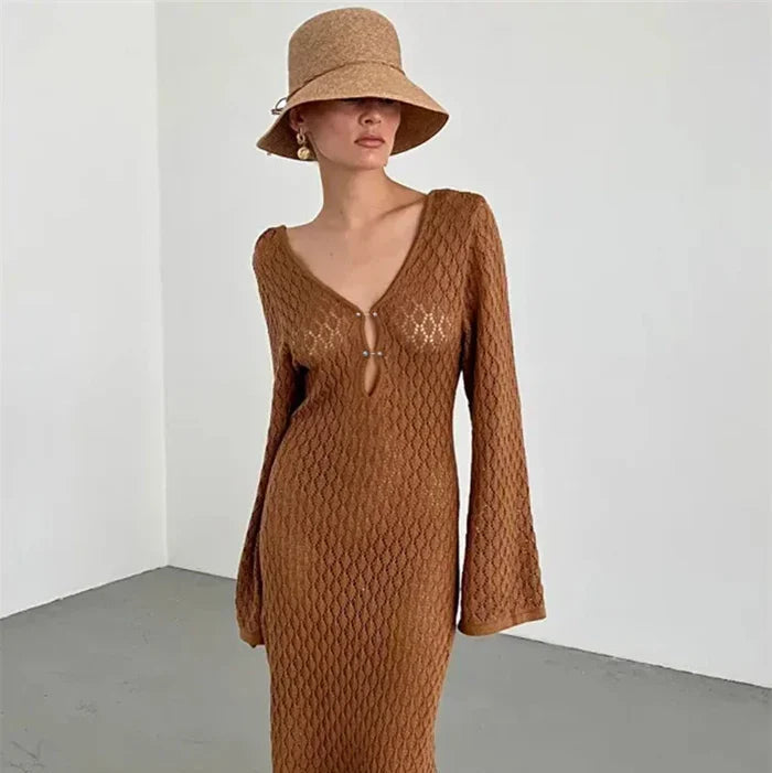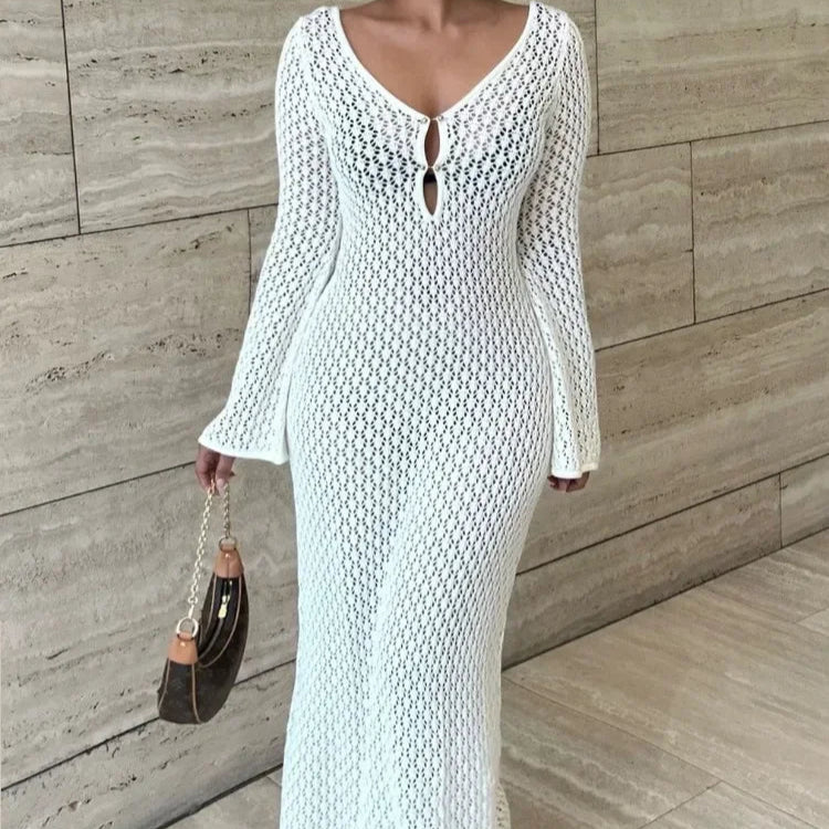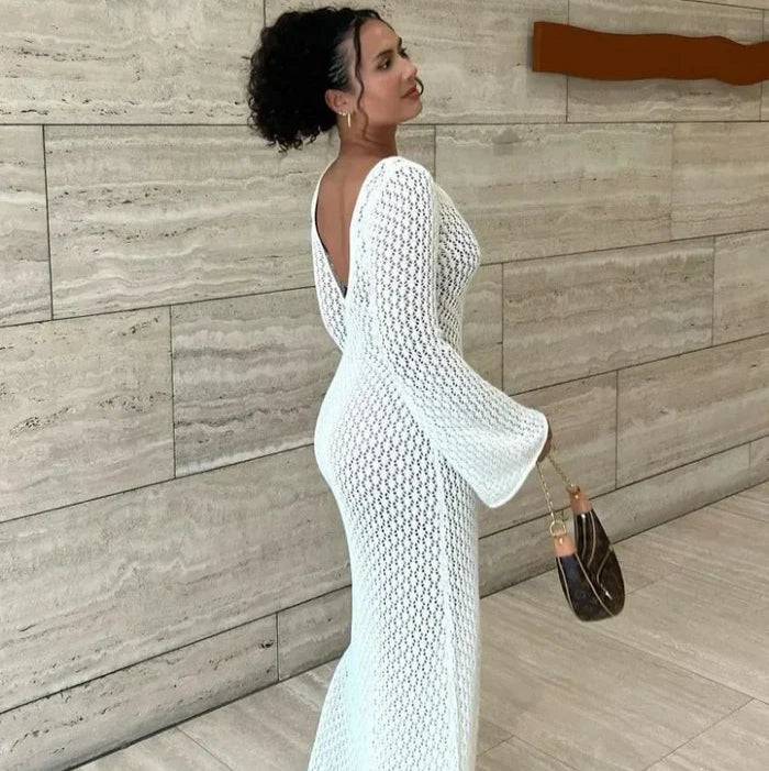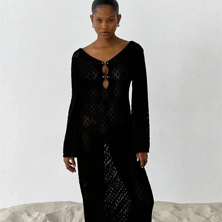 Aura Serena – Long Sheer Knit Cover-Up Dress