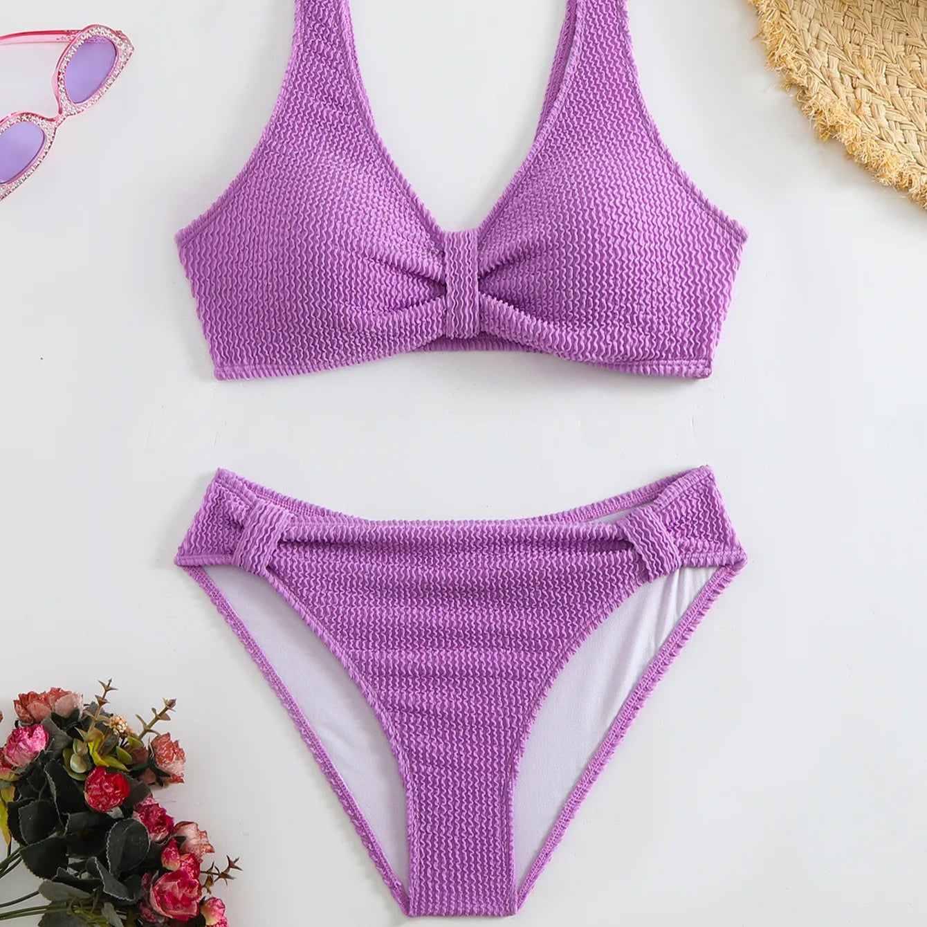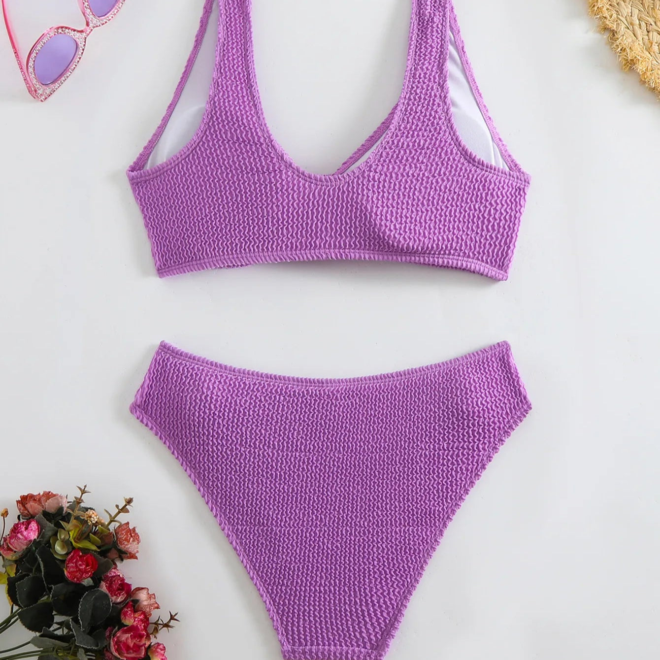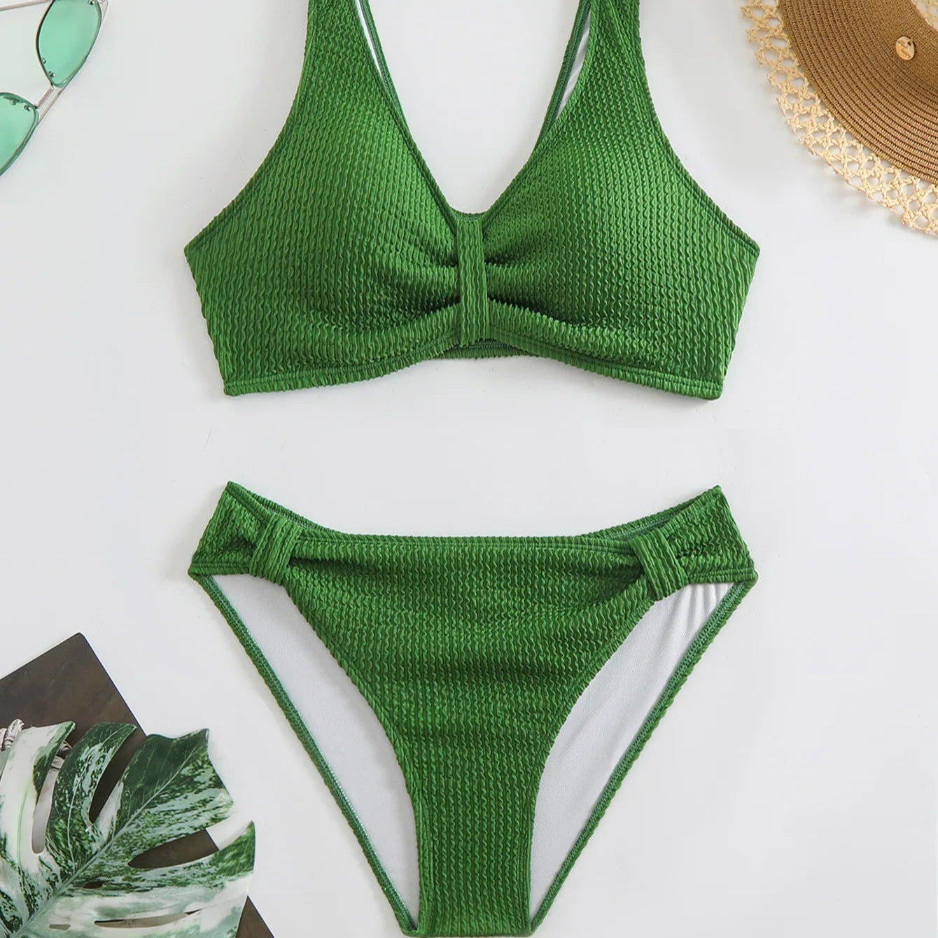 Elevate your beach style with this timeless two-piece swimsuit. The flattering V-neck top pairs effortlessly with high-waisted bottoms, offering a perfect balance of elegance and comfort. Crafted in a sleek solid color with a stunning backless design, it’s the ultimate choice for unforgettable beach vacations and sunny getaways."