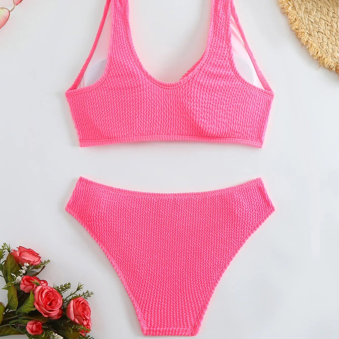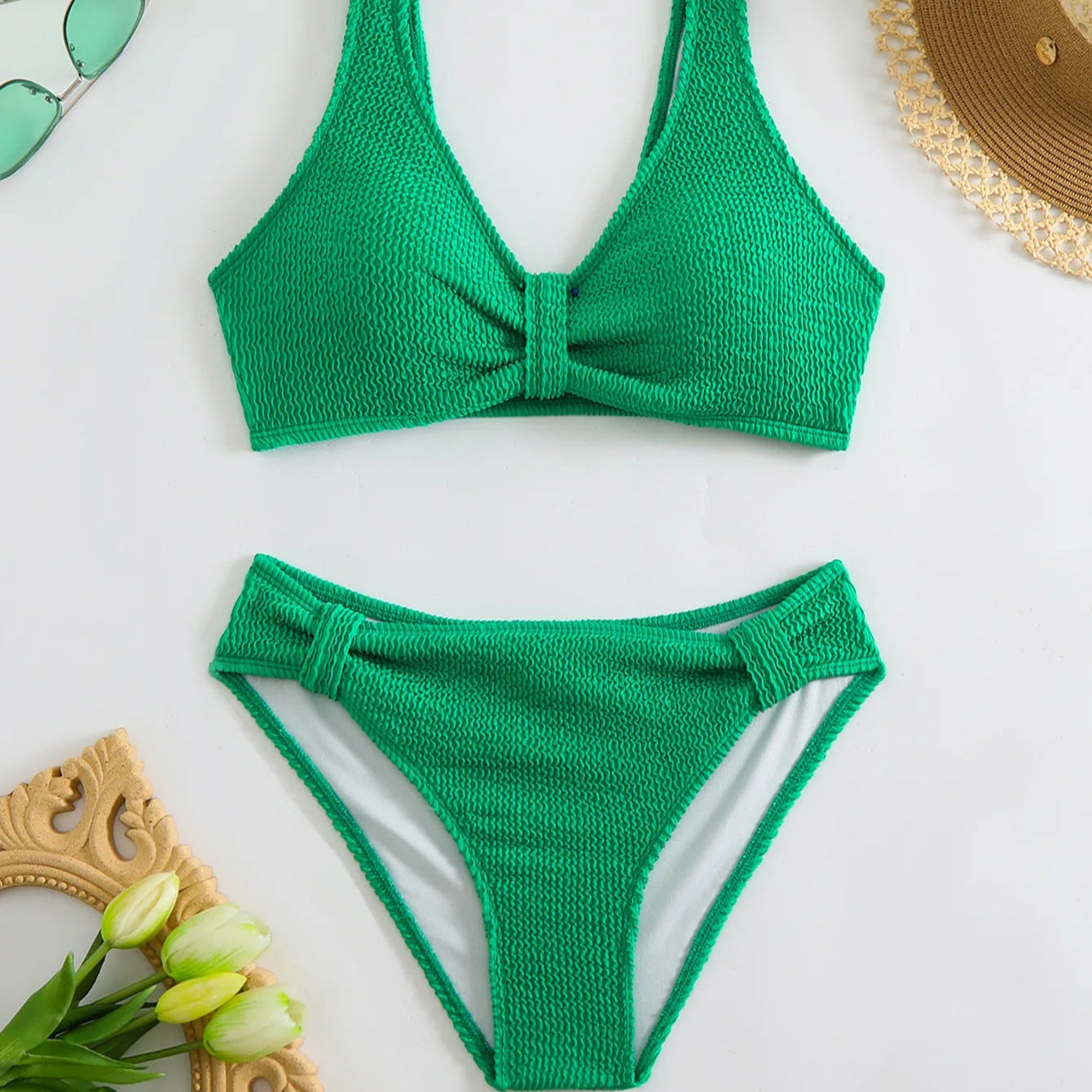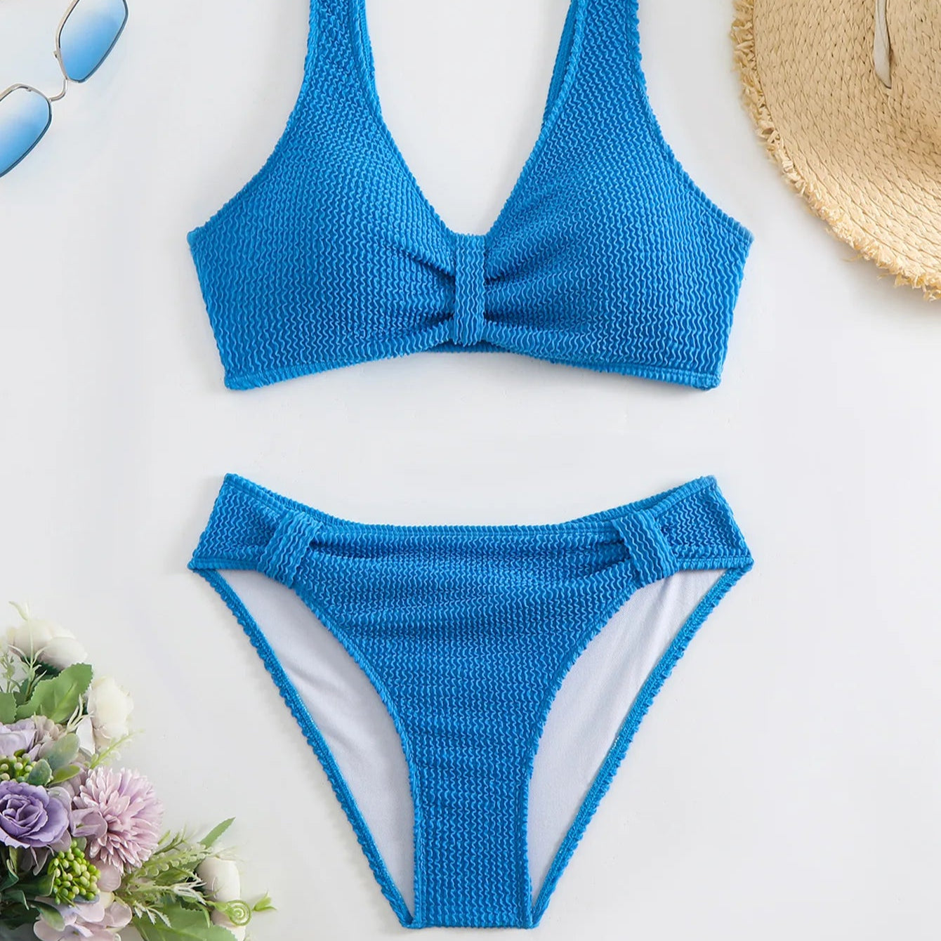 Elevate your beach style with this timeless two-piece swimsuit. The flattering V-neck top pairs effortlessly with high-waisted bottoms, offering a perfect balance of elegance and comfort. Crafted in a sleek solid color with a stunning backless design, it’s the ultimate choice for unforgettable beach vacations and sunny getaways."