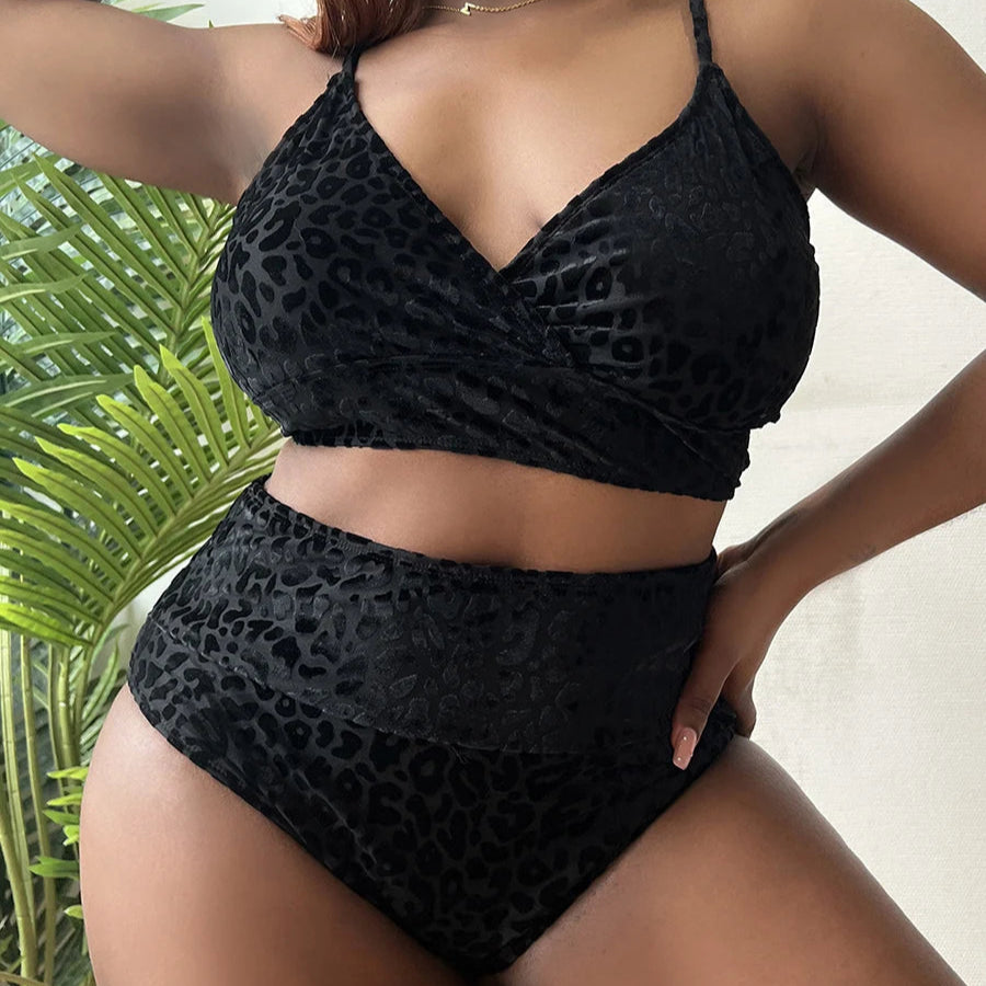Leopard Print Plus Size Bikini – V-Neck Wrap & High-Waist Bottom