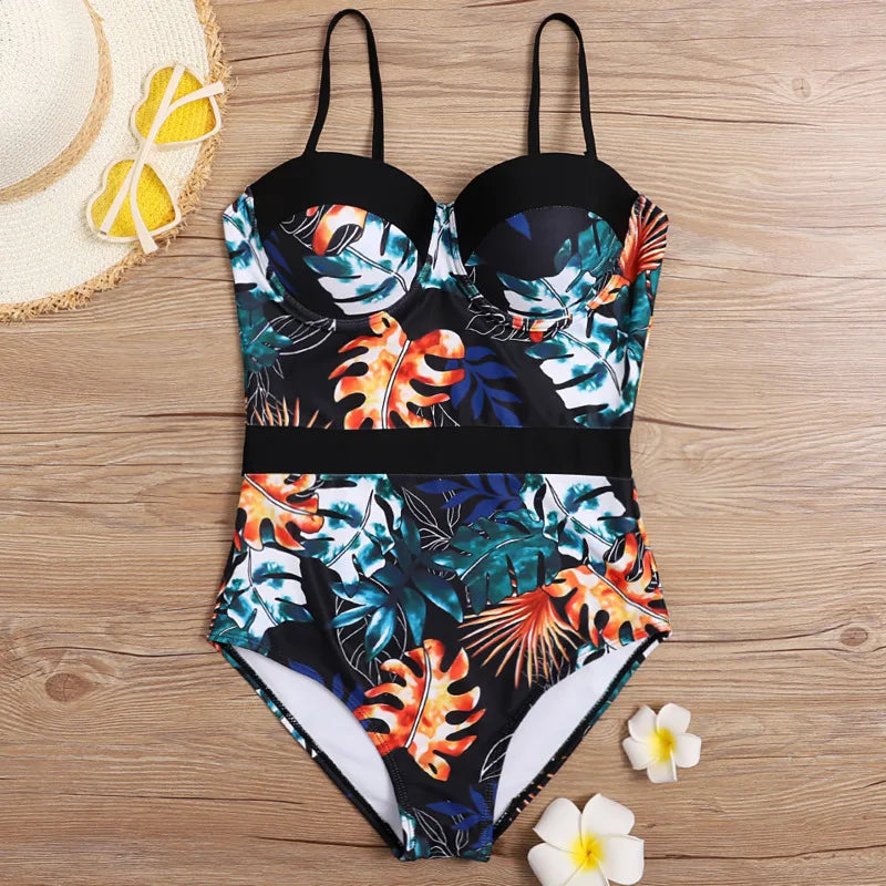 A sleek one-piece with a tropical leaf print and built-in underwire support for a lifted, secure fit. Adjustable shoulder straps let you personalize the feel, while a self-fabric waist sash creates a belt-like accent that cinches the waist. High-stretch fabric keeps it comfortable from beach to pool.