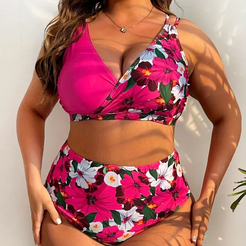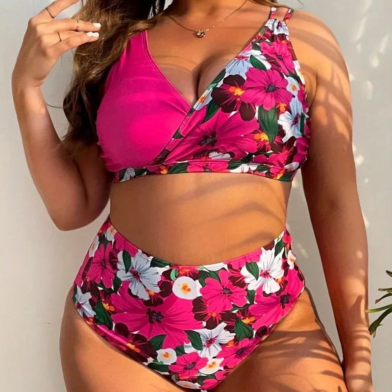 Unleash your confidence with our 2024 Bold Tropic Energy Bikini Set – specially designed for curvy women who want both comfort and style at the beach or by the pool. This two-piece swimsuit features a flattering high-waisted bottom for tummy control and a racerback cross-strap top that offers superior support and a natural push-up effect.