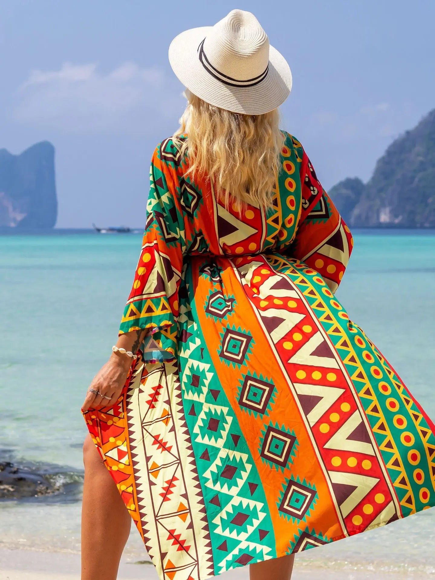 The Botanica beach cover-up brings lightness, freshness, and a touch of tropical sophistication. Made of soft, flowing chiffon, it moves beautifully in the wind and adds style to your beach or poolside look. Perfect for walks, lounging, or any summer occasion — no extra layers needed.
