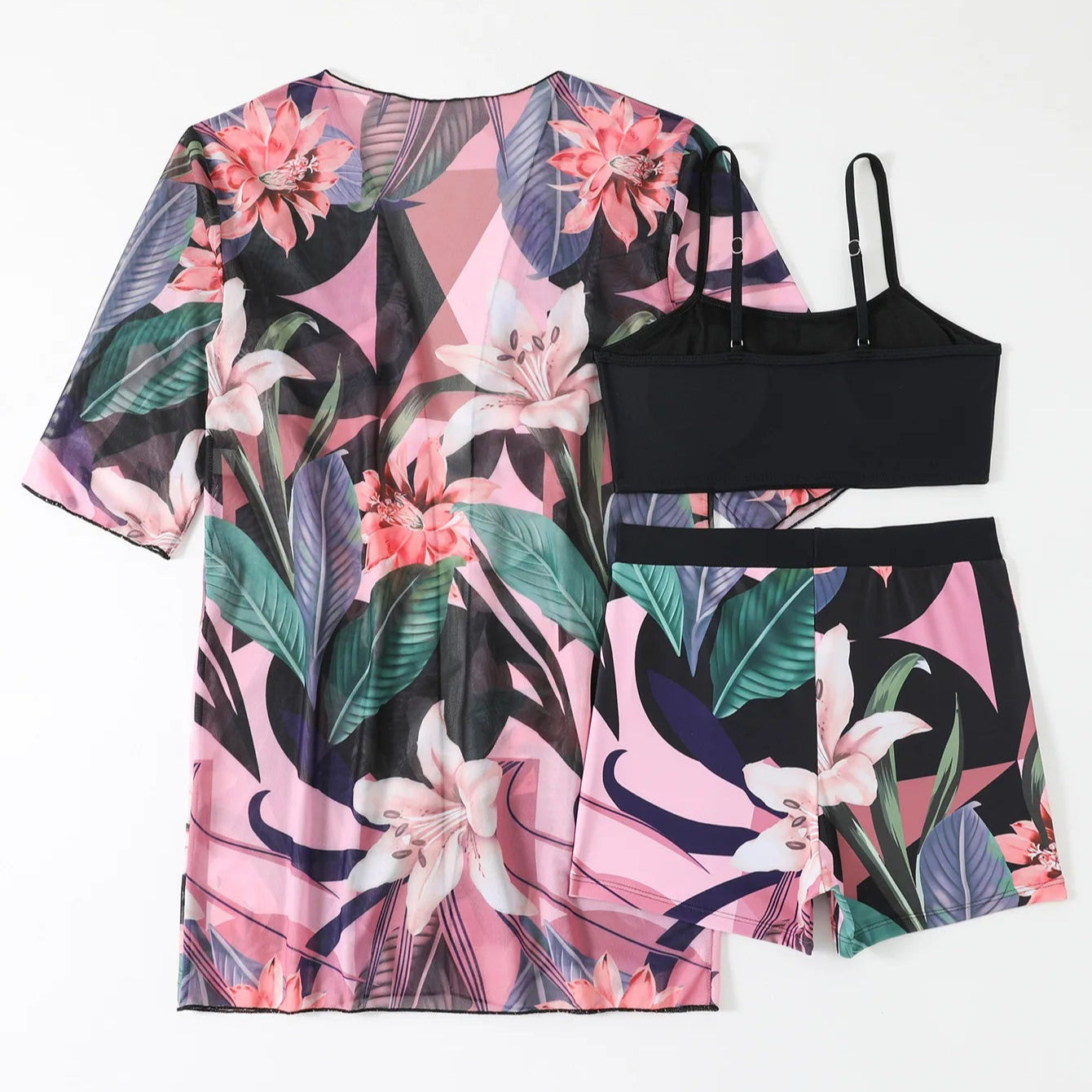Tropical floral bikini set with beach cover up