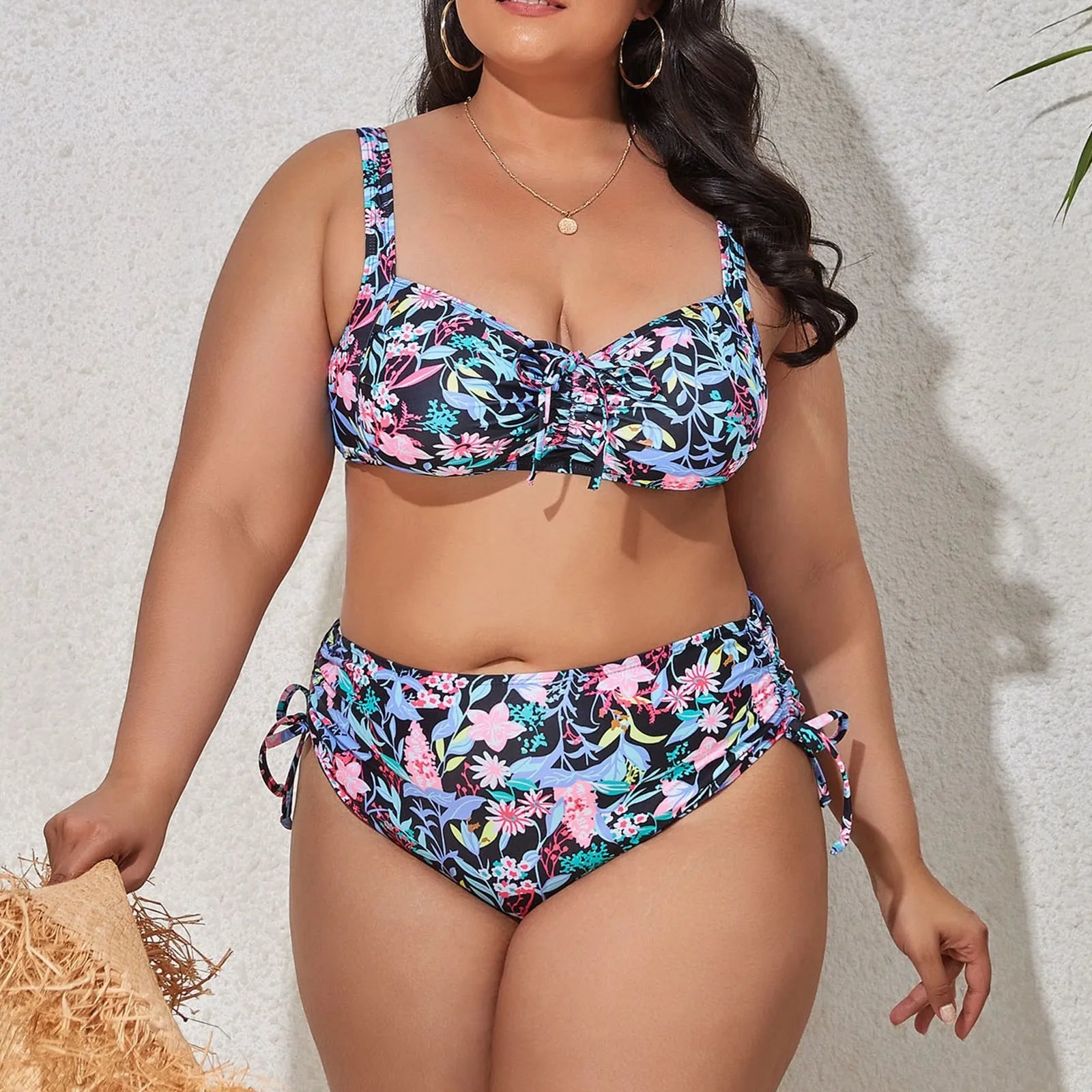Bring elegance to your beach look with this plus size one-piece swimsuit. The solid design features a deep V-neckline with subtle ruching at the bust and a delicate ruffle trim that runs along the neckline and continues to the back. The open-back cut highlights your silhouette, while the fixed straps ensure comfort and security. A timeless choice for summer, perfect for poolside, vacations, or beach getaways.