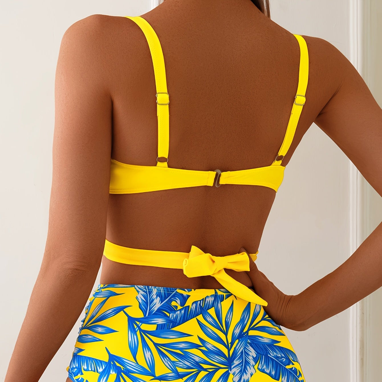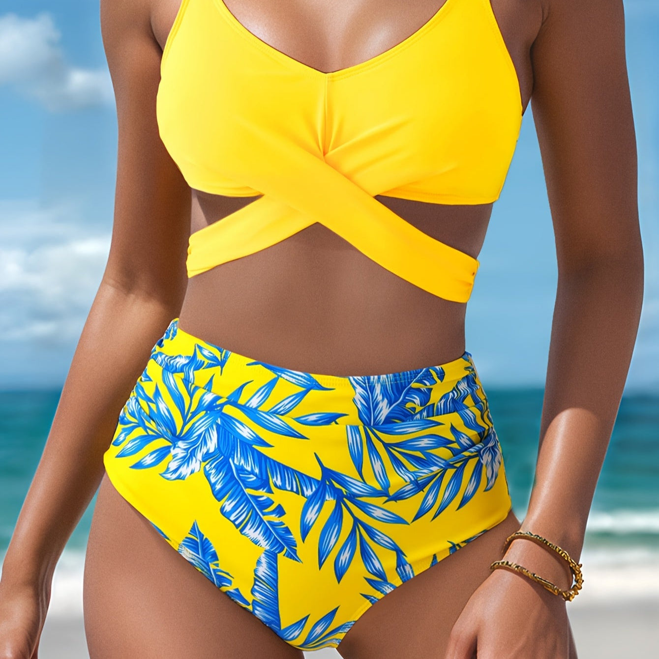 Bring a touch of tropical charm to your beachwear with the Palm Lace Bikini Set. Crafted from high-stretch fabric for a perfect fit, this two-piece features a stylish cross-strap front and flattering ruched details that enhance your silhouette. The playful plant print adds a fresh, summery vibe, while the lace-up design ensures adjustable comfort. Ideal for sun-soaked days by the pool or seaside escapes.